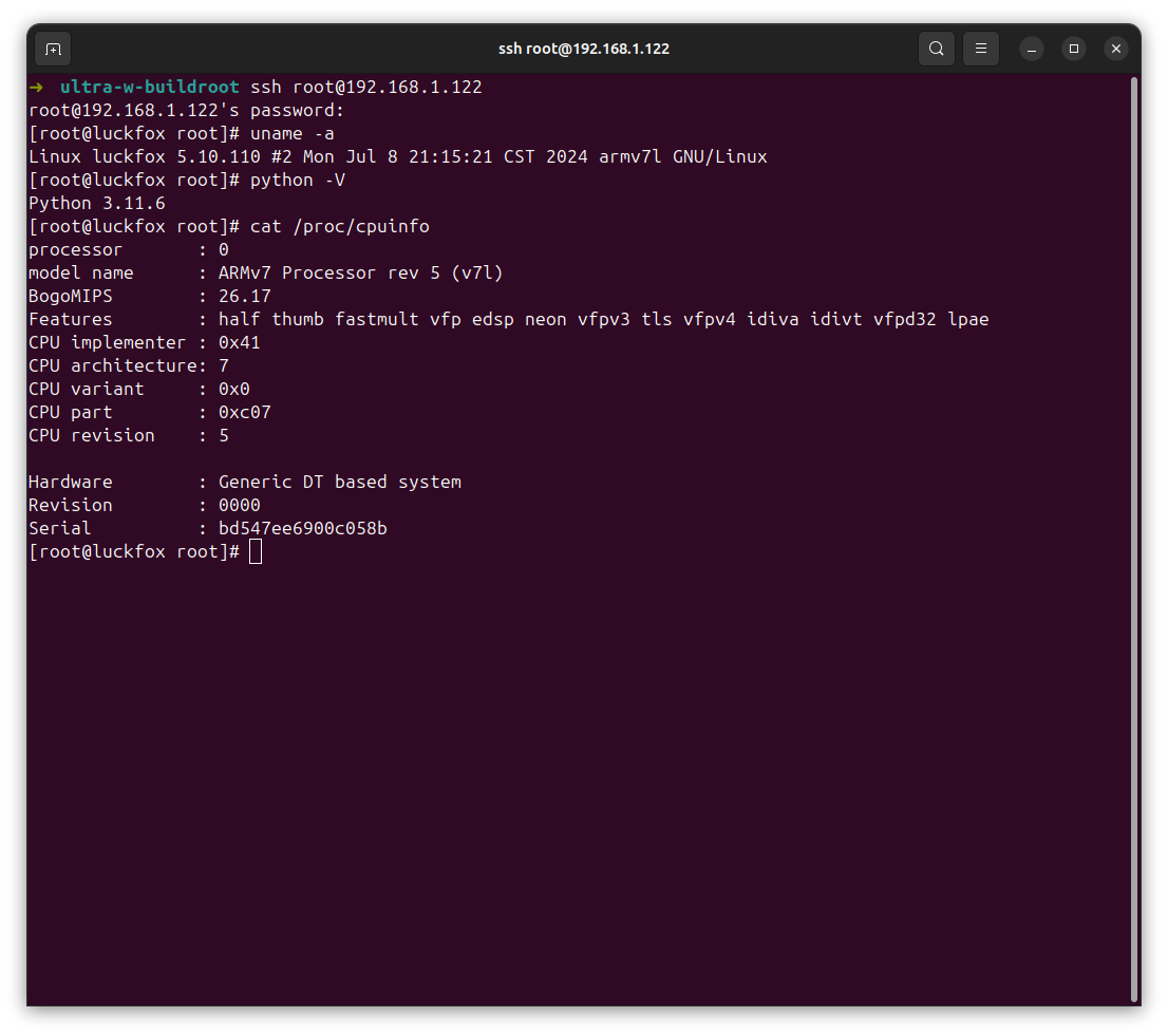 Executing on device: 0001:03:00.0 Identifying board Control Protocol Version: 2 Firmware Version: 4.22.0 (release,app,extended context switch buffer) Logger Version: 0 Board Name: Hailo-8 Device Architecture: HAILO8L Serial Number: HLDDLBB243201887 Part Number: HM21LB1C2LAE Product Name: HAILO-8L AI ACC M.2 B+M KEY MODULE EXT TMP